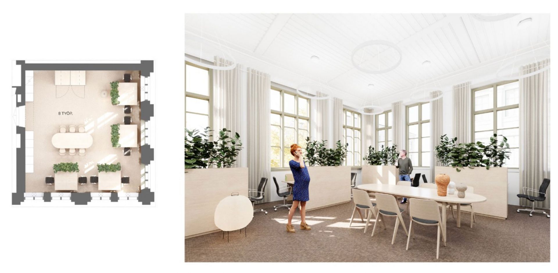 *** till inredningen i alla kontorsutrymmen hör 2 telefon-/onlinemötesbås